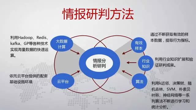 在情报智能应用层面,该利用k近邻、决策树、随机森林、SVM、朴素贝叶斯、神经网络等一系列算法不断进行学习和统计分析,有助于 知识与经验的快速转移、吸收和重复利用。对人员行为进行异常分析,能有效弥补情报分析人员经验、知识的不足,避免认知偏见与思维定势,确保分析活动的效率以及分析结果的准确性。