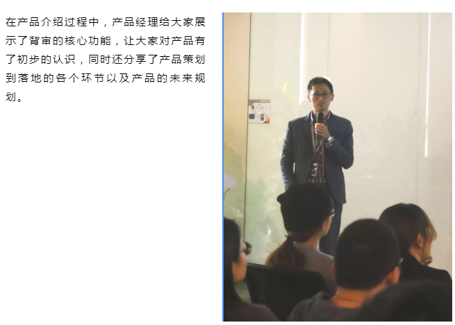在本次产品发布会上,背审产品团队借此机会展示了研发过程的创新模式和前端用户体验的全新升级,此次发布会分为:
