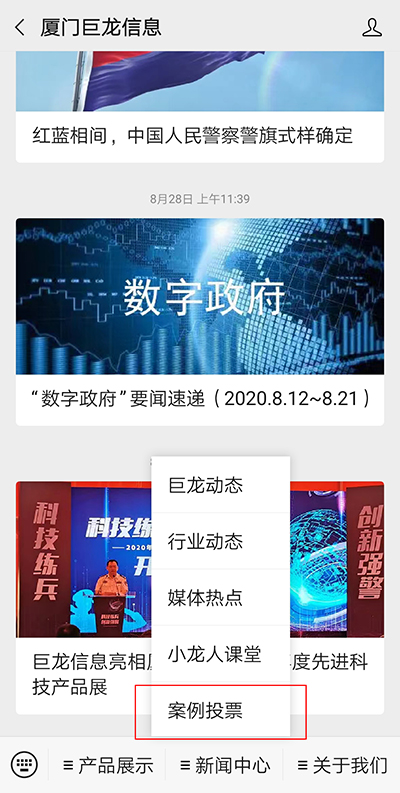 方法1、通过巨龙信息微信公众号点击新闻中心进入案例投票菜单。