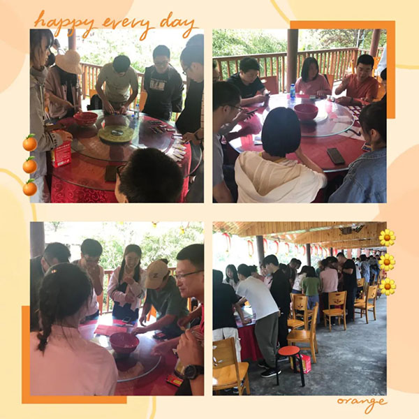 接下来齐聚农家乐,开启了一年一度的闽南特色传统活动——博饼。大家按照心愿分为六桌。博饼现场,员工们热情高涨,纷纷放手“博”奖品。骰子在大瓷碗中落下发出的叮当清脆的响声,与现场小伙伴欢呼声交汇成一片。事实上,博饼已不是一项单纯的娱乐活动,更是一条纽带,将人与人之间的距离变得更加亲近,让大家相聚在一起,博出喜庆,博出运气,博出美好。