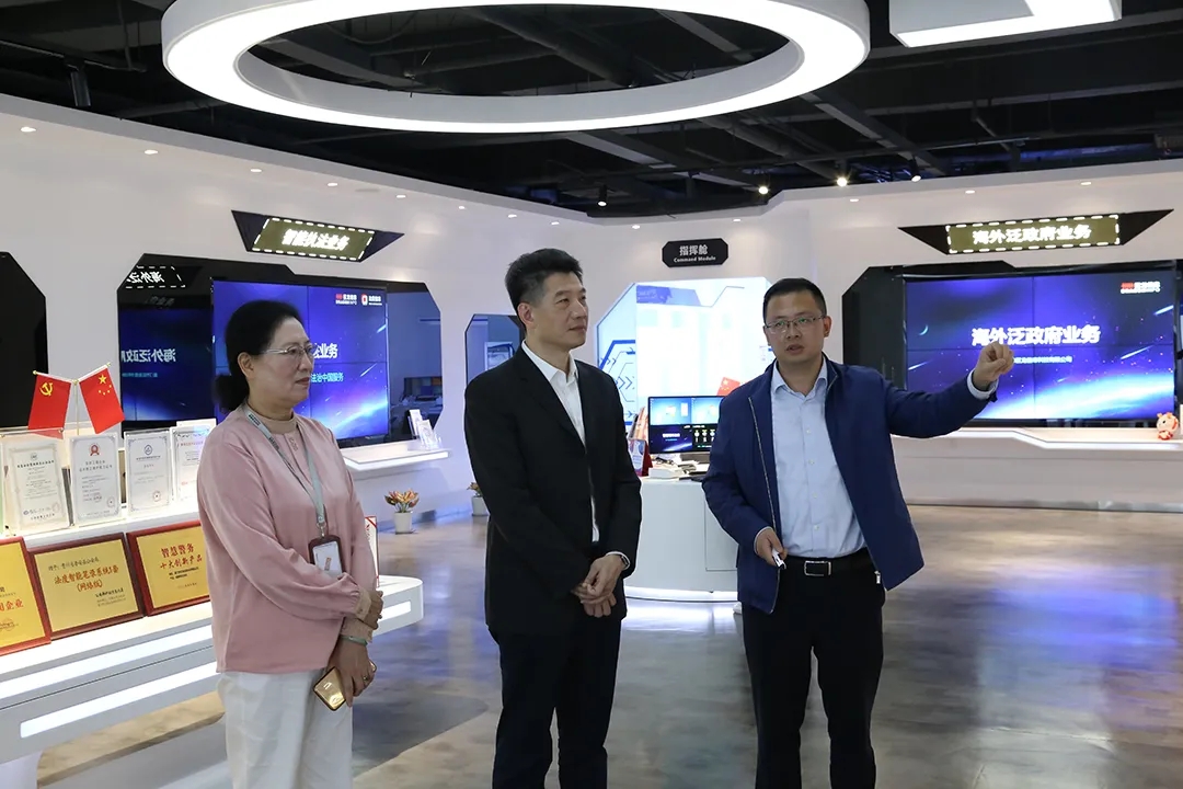 随后,庄主任一行在演示厅听取刘总介绍公司最新产品,通过公司研发的基层治理数字化、智能化平台,打造新时代“枫桥经验”的一项创新工作,为加快“数字政府”建设提供强有力的支持。庄主任对此十分感兴趣,对公司开拓“数字政府”智能化业务取得成绩表示肯定和称赞。