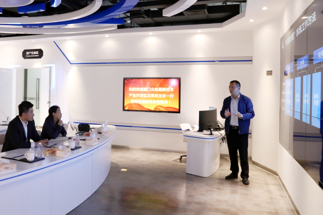 在参观巨龙体验中心展厅,庄主任一行详细听取了公司的发展历程,业务介绍,分支机构,并了解了公司的智慧公安、数字政府、智能执法的业务,以及为全国客户30+省1000+个项目提供技术服务,利用大数据与AI技术提升工作效率的相关案例。刘总还汇报了公司的数字化业务、技术先进性、广阔市场空间,公司的发展战略规划等,庄主任鼓励巨龙公司努力打造明星产品,打造自主品牌,扩大生产经营规模,业绩再创辉煌,并表示厦门高新区将在优质产品市场、产品宣传推介和新产品研发等方面,积极创造条件予以支持,助力巨龙信息快速发展。