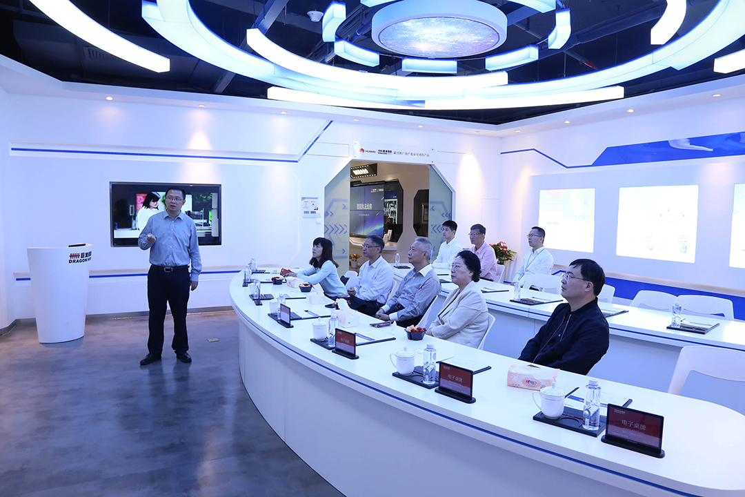 刘平山董事长一行参观了巨龙体验中心展厅,详细了解公司的发展历程,“共创、共担,共享”的企业文化理念,分支机构设置,行业和业务领域,以及公司在政务数字化改革中的经验案例。