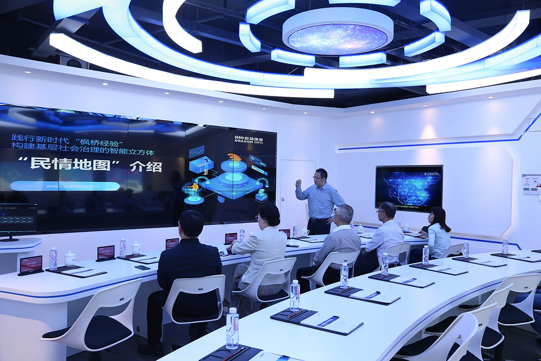 在产品介绍展厅,刘晹董事长详细介绍了“民情地图”,这是集数字化、可视化、地图化于一体的基层社会治理现代化系统。