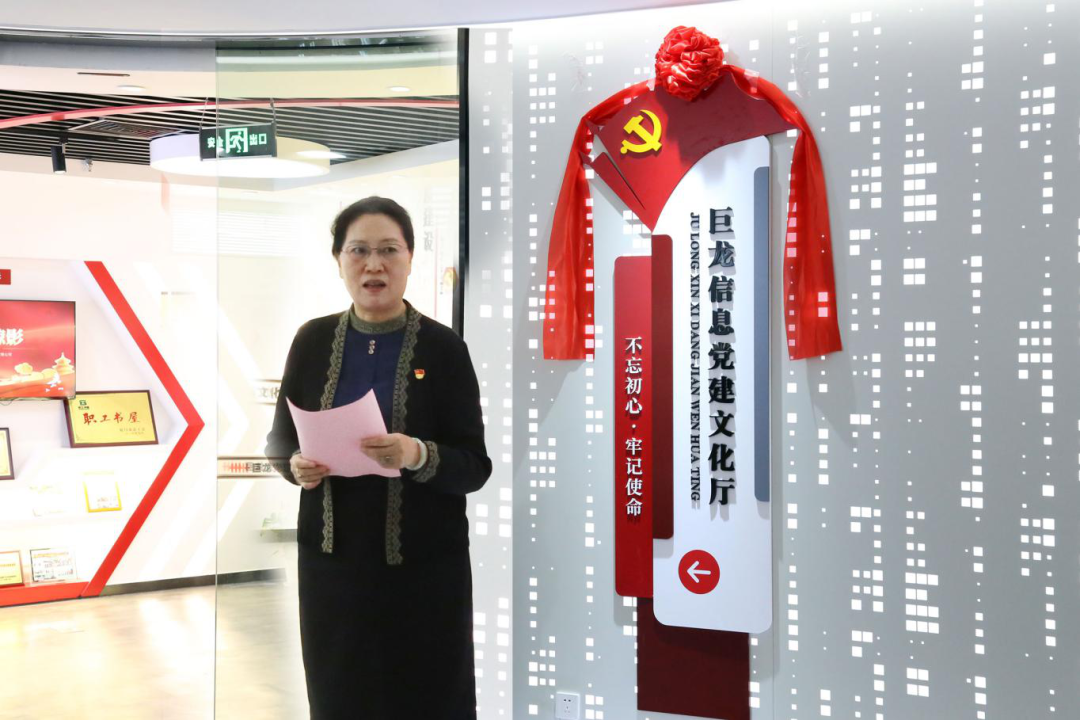 仪式上,公司党总支书记、副总裁张敏玲表示,在建党百年之际,我司党建文化厅的建成,是巨龙全体党员及巨龙人政治生活中的一件大事,也是礼献建党百年的一份厚礼。近年来,在上级党委的正确领导和关心下,巨龙信息党总支坚持党的领导和坚持以习近平新时代中国特色社会主义思想为指导,作表率、争先锋,在企业生产经营中充分发挥党员的先锋模范作用,为党的事业和公司的持续发展贡献自己的力量。