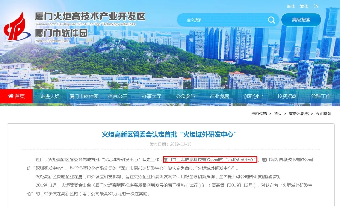 “火炬高新区可以说是我们的娘家。”巨龙信息副总裁张敏玲回顾巨龙的发展历程: