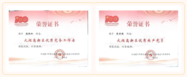 我司党总支张敏玲同志荣获火炬高新区“优秀党务工作者”荣誉称号;陈亚梅同志荣获“优秀共产党员”荣誉称号。张敏玲同志代表“优秀党务工作者”获得者在大会上进行了发言。