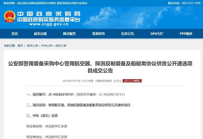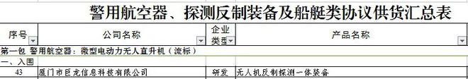 近日,公安部警用装备采购中心“警用航空器、探测反制装备及船艇类协议供货公开遴选项目成交公告”圆满结束,厦门市巨龙信息科技有限公司研发无人机反制探测一体装备成功入围。