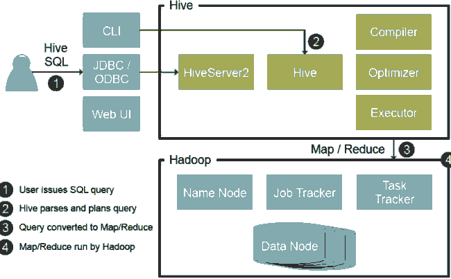 Hadoop的分布式文件系统,在这里作为数据仓库的存储层。图中的Data Node就是HDFS的众多工作节点。