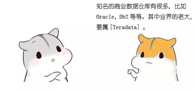 2.关于Teradata,小灰曾经有幸在这里工作过,虽然不是从事数据仓库领域。Teradata 的确是一款很强大的商业数据仓库,对此有兴趣的同学,可以百度学习一下具体知识。