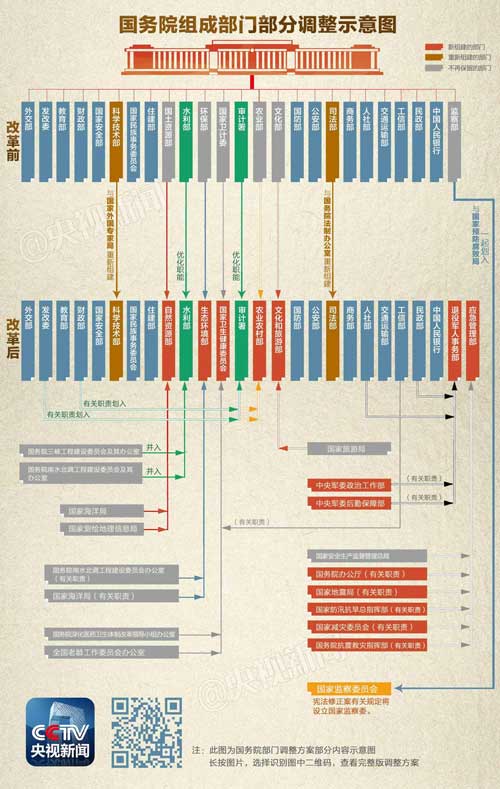 13日,国务院机构改革方案提请十三届全国人大一次会议审议,新一轮国务院机构改革即将启动。