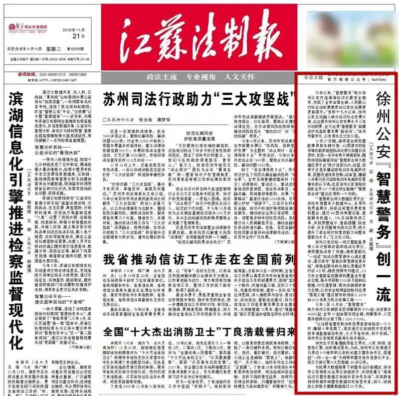 2018年1至10月份,“智慧警务”助力徐州公安破获各类刑事案件9754起、治安案件44282起,全市37起命案实现全破,刑事案件、八类案件数同比分别下降1.52%、9.53%。