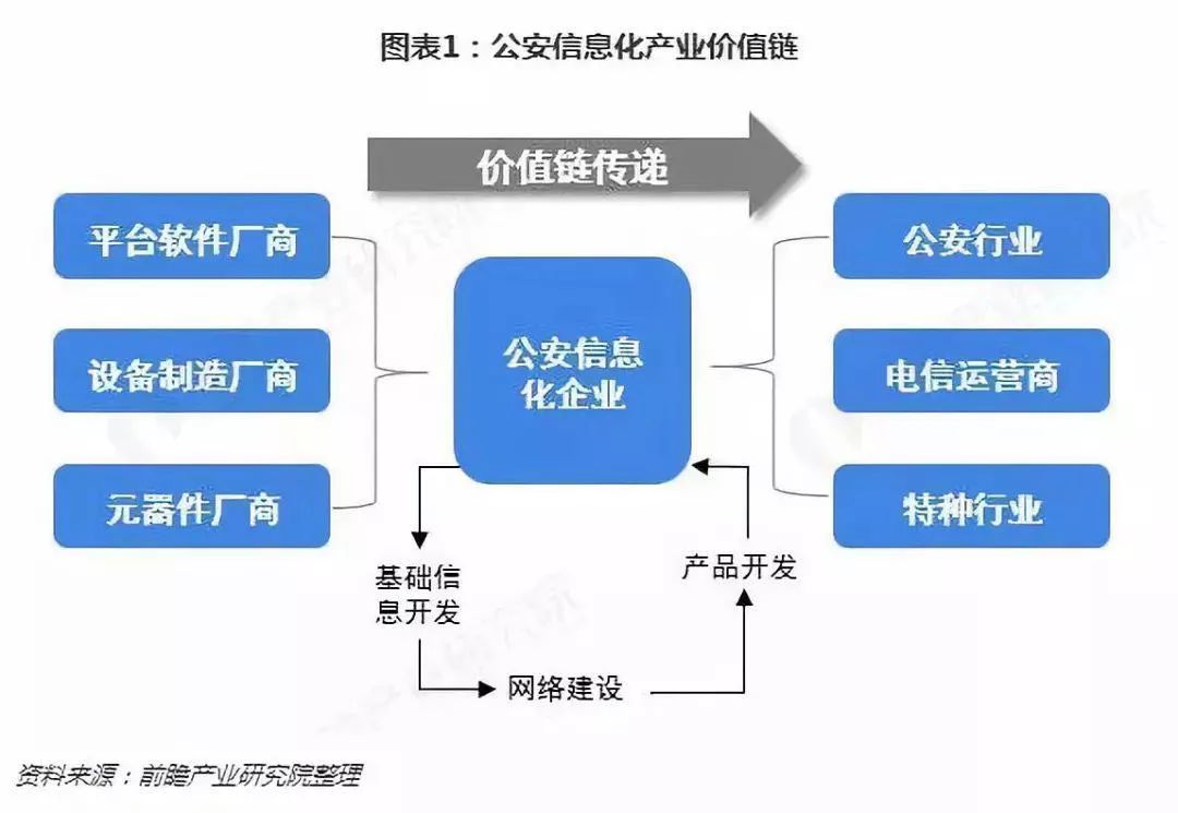 目前,我国已经形成了较为成熟的公安信息化产业价值链。行业的上游主要为平台软件厂商、设备制造厂商和元器件厂商等。下游主要为公安信息化产品的需求行业,包括公安行业、特种行业等。近些年社会公共安全需求的不断升级,为公安信息化行业提供了广阔的空间。