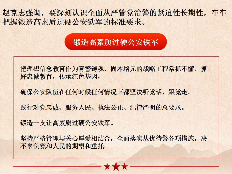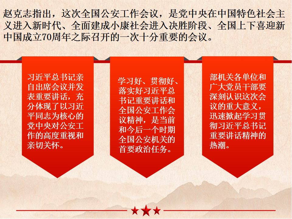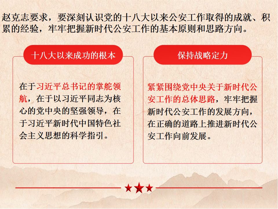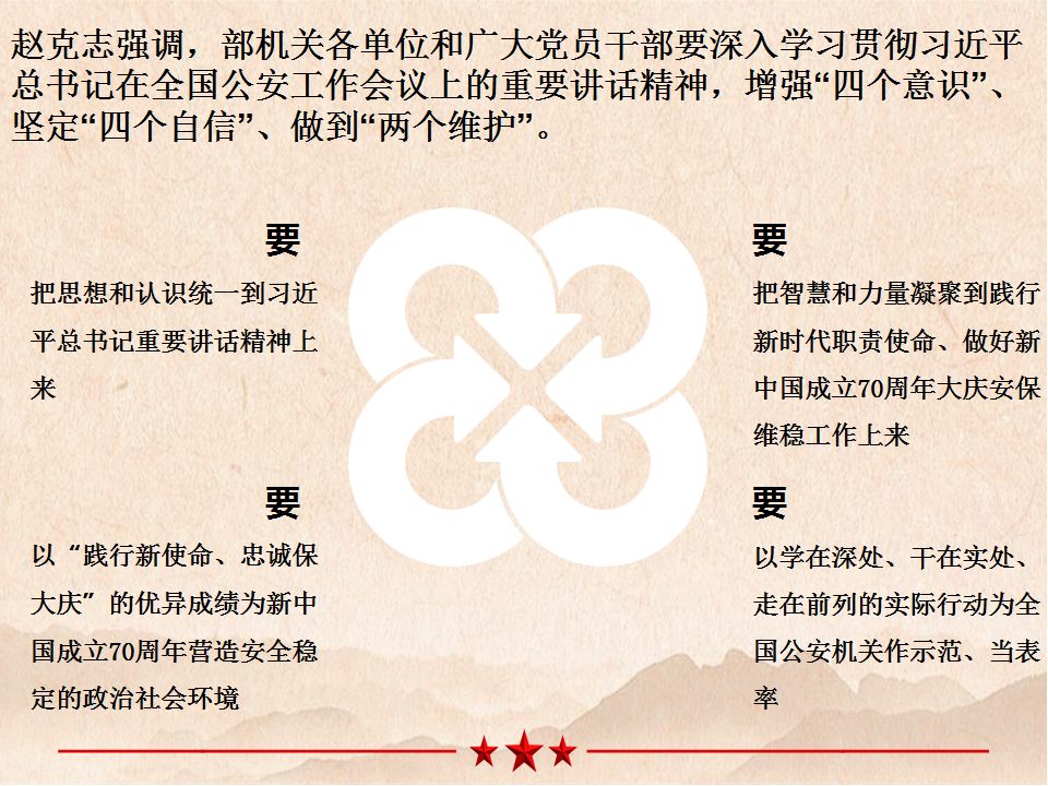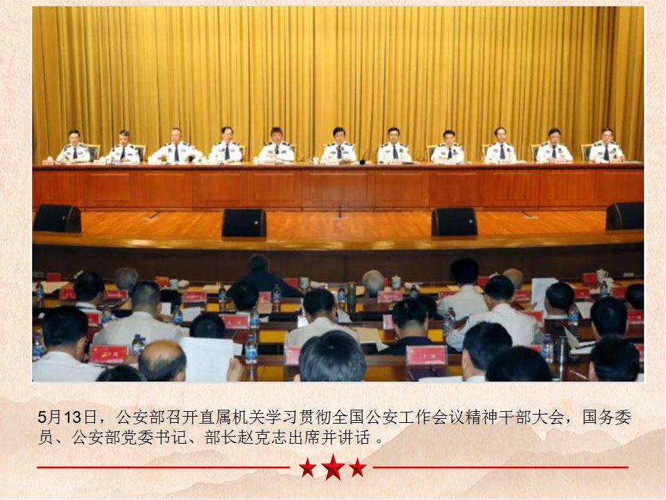5月13日,公安部召开直属机关学习贯彻全国公安工作会议精神干部大会,国务委员、公安部党委书记、部长赵克志出席并讲话 。