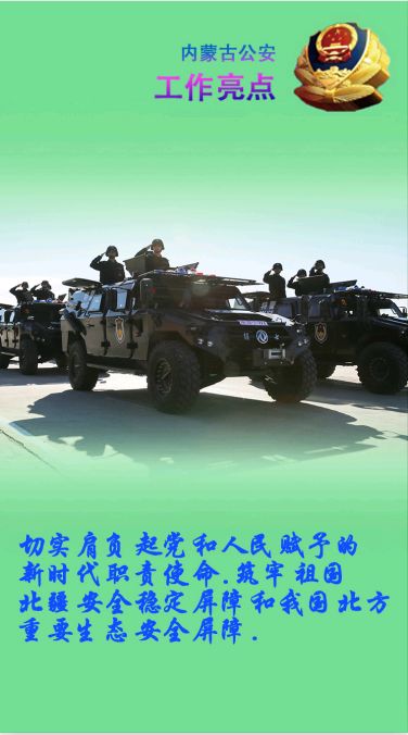 维护“两个屏障”的安全,做“两个屏障”的忠诚卫士,是内蒙古公安机关的神圣使命。党的十八大以来,全区各级公安机关深入贯彻落实习近平新时代中国特色社会主义思想,践行“对党忠诚、服务人民、执法公正、纪律严明”的总要求,树牢“四个意识”、坚定“四个自信”、做到“两个维护”,坚持总体国家安全观,坚持以人民为中心的发展理念,坚持稳中求进工作总基调,守望相助、团结奋斗,攻坚克难、砥砺奋进,为维护国家安全、社会公共安全、人民生命财产安全筑起了一道坚不可摧的铜墙铁壁。