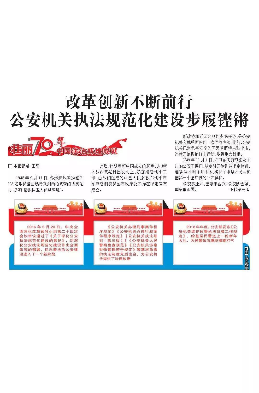 一项项有力的改革举措、一条条规范的执法记录、一张张优异的成绩单……新时代,全国公安机关以改革创新的精神和敢于担当的勇气,踏着公安执法规范化建设的坚实脚步,正朝着法治公安建设的目标奋勇前进。