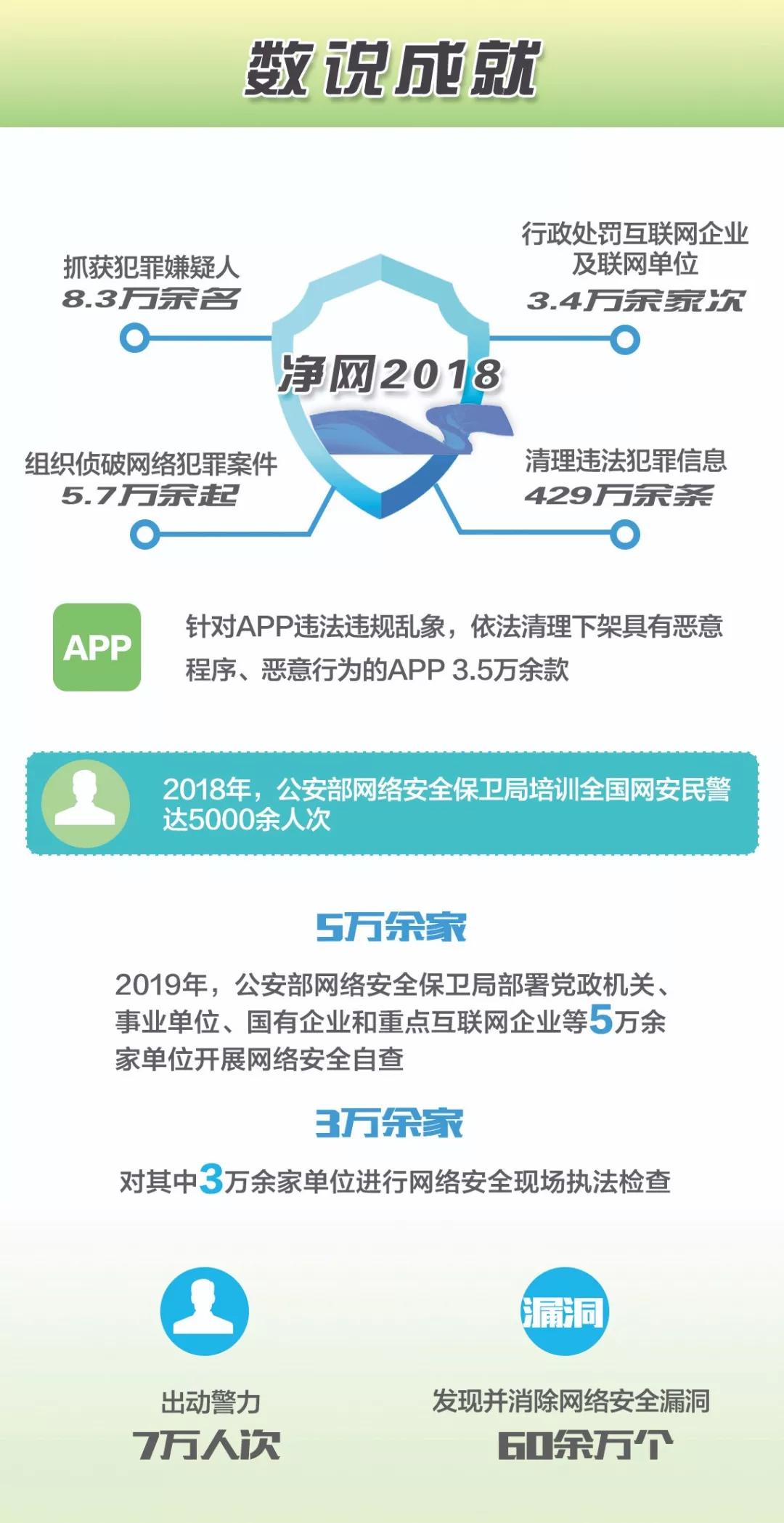党的十八大特别是党的十九大以来,全国公安机关网安部门以人民为中心,针对一系列突出网络违法犯罪,开展专项打击整治行动,累计侦破各类涉网违法犯罪案件45万余起,打击处理违法犯罪分子75万余名,对违法犯罪分子形成了强有力的震慑作用,有力保障了人民群众生命财产安全。