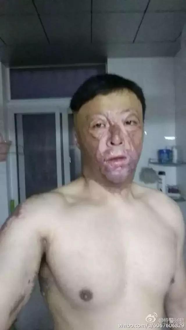 自己的面部和四肢却被严重烧伤