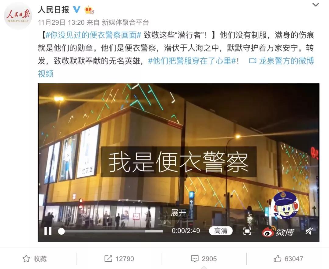 就在几天前,@人民日报 上传了一则“致敬便衣警察”的微博。