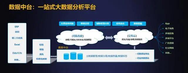 通过对业务数据化,进行数据的清洗形成数据管理平台,通过模型化的搭建和数据整合形成数据中台。