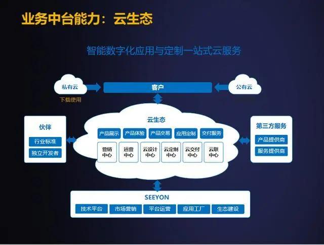 目前大多数的应用都趋向智能数字化应用的服务,不再是传统的烟囱式的应用程序。它根据业务驱使的范围(根据公司本身的业务走向),自身的生态可以分为很多个业务中心。就拿一个产品为例,它拥有营销、运营、设计、定制,交互等相关业务中心。这些业务中心的生态就拥有各自的服务能力,例如产品展示、产品体验、产品交易、售后服务等。客户可通过这些业务去了解及使用相关服务的能力,而这些服务能力形成了中台,即所谓的业务中台。它支撑了客户随时随地能使用了解产品,而并不会关心技术细节是怎样。通过业务的集成能力,拆分组合能力形成了中台的生态。