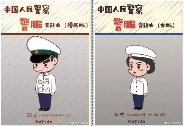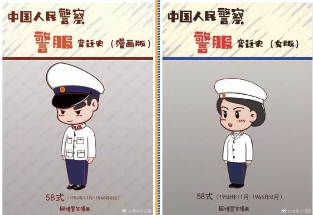 1958年11月1日,民警服装施行新的制式,即“五八式”警服。“五八式”警服,是对“五五式”警服的修改补充,1958年设计定型,1959年10月1日陆续更换。