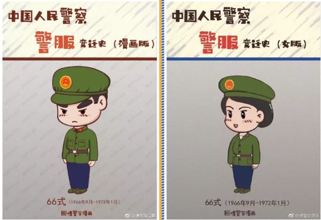 1966年3月,公安部就民警的服装制式问题向国务院写了专题报告,提出新设计的民警服装制式、技术规格和质量均与解放军干部相同。