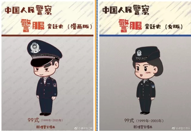 2000年9月20日,公安部在北京举行换发“九九式”警服新闻发布会,决定从2000年10月1日凌晨起,北京等全国大中城市公安民警换装“九九式”警服。到2001年年底,全国换装结束。
