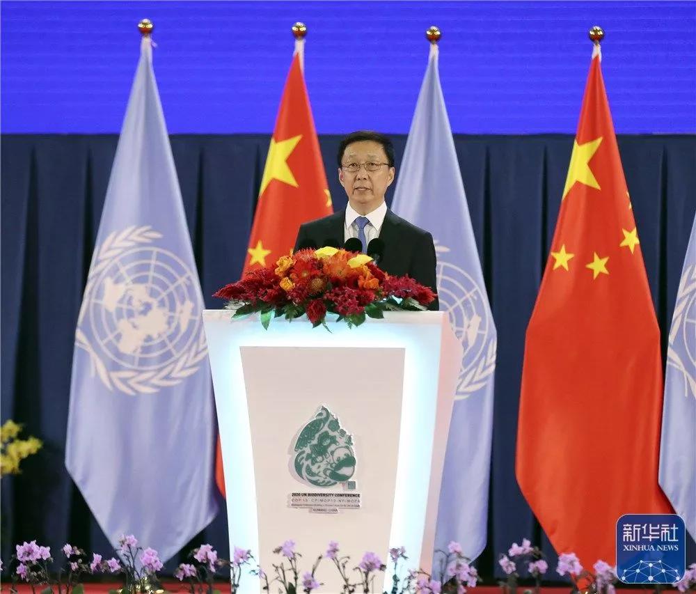 10月11日,中共中央政治局常委、国务院副总理韩正在云南昆明出席《生物多样性公约》第十五次缔约方大会开幕式并致辞。