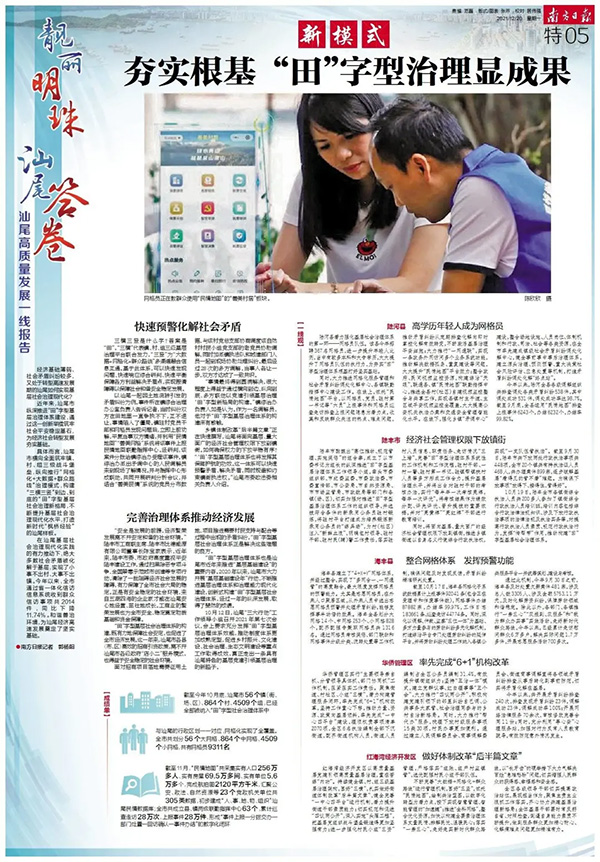 截至今年10月底,汕尾市56个镇(街、场、区)、864个村、4509个组,已经全部被纳入“田”字型社会治理体系中。