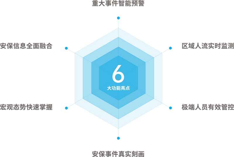 以公安机关各大重大活动安保专项工作为牵引,通过全面感知、智能预警、研判分析、快速处置、可视化指挥等手段,力图全面、客观刻画重大活动运行态势及变化趋势,提升重大活动安保期间情报、指挥、治安等警种应对突发事件防范和处置能力,进一步健全重大活动安保工作机制,打造全国一流的重大节点安保体系。