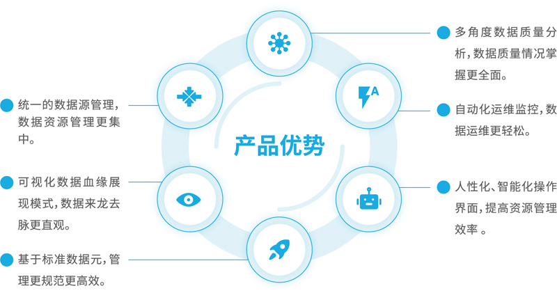 大数据管家专注于海量异构数据获取、处理、使用的全生命周期管理,基于主流混合云大数据库之上,提供数据资源资产化、数据标准规范化、资产监控一体化、质量监督常态化、多维目录可视化等管理工作。