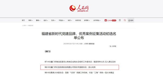 近日,人民网福建频道公布了福建省新时代党建品牌、优秀案例征集活动名单。