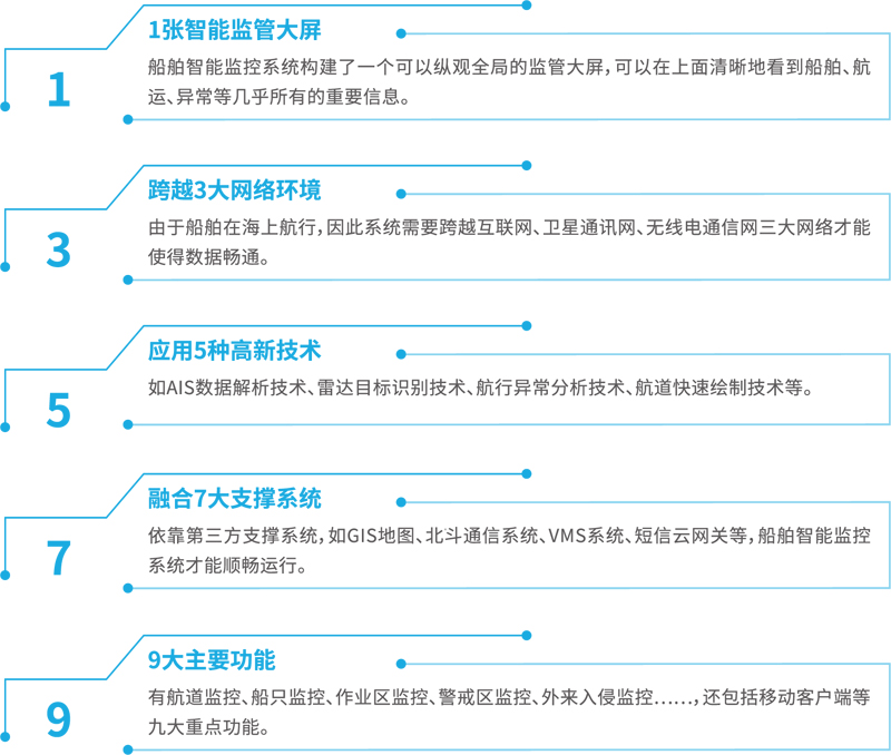 船舶智能监控系统是一套专门针对船舶运行行为监管的信息化系统,利用各种先进的技术手段对船舶进行长期科学管理,有效降低航行过程中问题发生的概率,确保船舶航行的有序和规范。