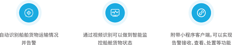 1、实现对船舶运输工作的监管,对船舶偏离航道、异常停留、货物变动等行为自动监控和告警,以规范船舶运输的行为。