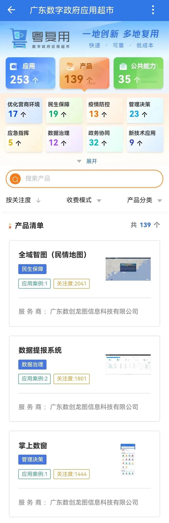 作为汕尾市数字政府建设核心服务商及广东省数字政府技术服务商,广东数创龙图在“粤复用”上架了汕尾民情地图应用平台、汕尾市“数看汕尾”系统、汕尾市政务服务一体化监管平台等应用,以及全域智图、数据提报系统、掌上数窗等产品,积极对外推荐汕尾数字政府建设的优秀案例和成果,输出汕尾模式和经验。