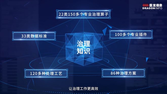 巨龙基于业务积累,总结出一套业务知识驱动方法论,依托全新治理自动化引擎,提炼固化22类150多个专业治理算子,极大降低治理门槛,让治理工作更高效。