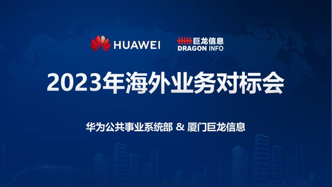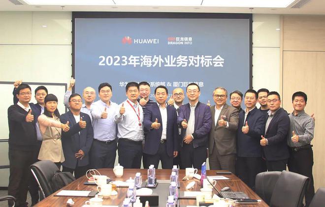 2023年2月1日,巨龙信息与华为公共事业系统部海外业务对标会在厦门巨龙总部举行。华为公共事业系统部副总裁邹思轶一行、巨龙信息董事长兼总裁刘晹、海外政务事业部总经理罗海翔等出席会议。