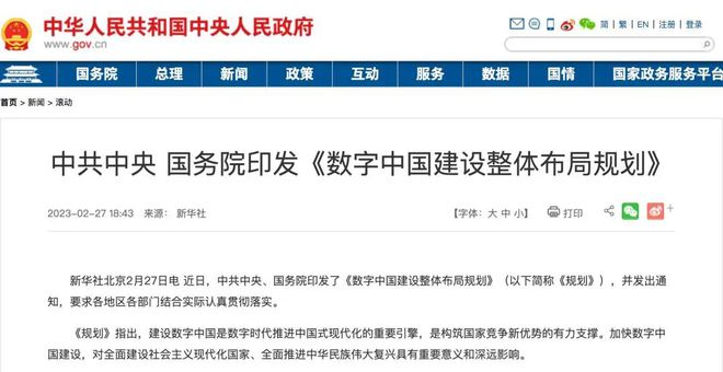 近日,中共中央、国务院印发的《数字中国建设整体布局规划》(以下简称《规划》)提出,到2025年,基本形成横向打通、纵向贯通、协调有力的一体化推进格局,数字中国建设取得重要进展。到2035年,数字化发展水平进入世界前列,数字中国建设取得重大成就。未来,数字技术将为经济社会发展带来更多新动力、新机遇。