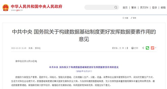 中共中央、国务院对外发布《关于构建数据基础制度更好发挥数据要素作用的意见》,又称“数据20条”。2023年,数据要素制度创新大幕全面拉开,我国构筑数字经济新优势迎来强大动能。