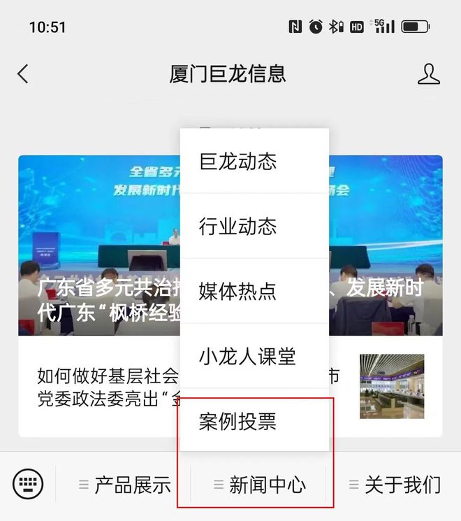 方法一:通过巨龙信息微信公众号点击新闻中心进入案例投票菜单。