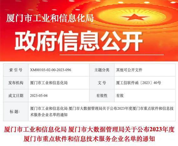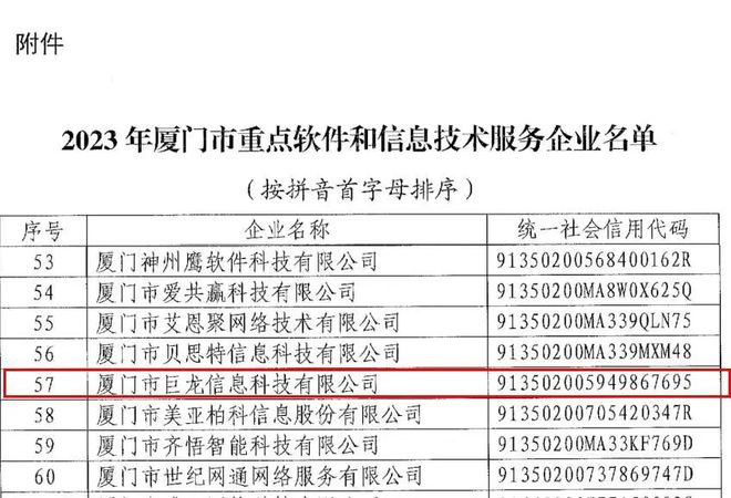 近日,厦门市工业和信息化局 厦门市大数据管理局关于公布2023年度厦门市重点软件和信息技术服务企业名单的通知,巨龙信息成功入选,再次证明了公司在软件和信息技术服务业的硬实力!