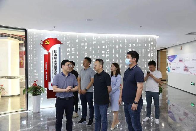王峰副总裁一行参观了巨龙信息展厅,听取公司公共安全、数字政府、智能执法、海外政企的业务发展和取得成绩汇报。