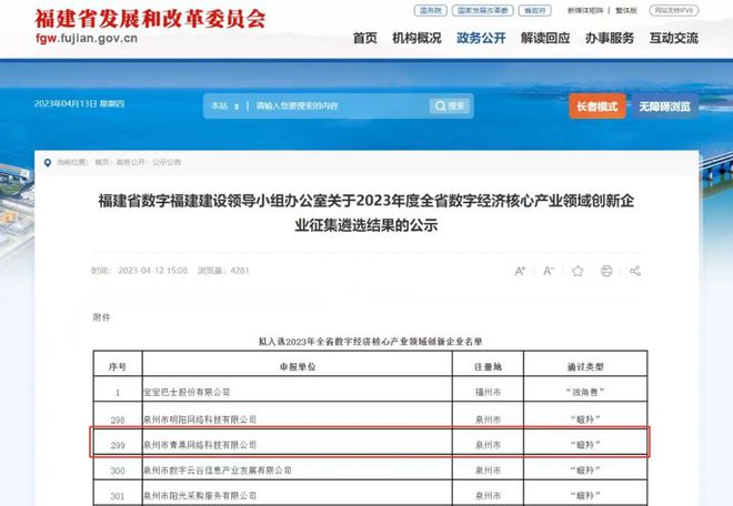 近日,福建省数字福建建设领导小组办公室公布了《2023年度全省数字经济核心产业领域创新企业名单》,法度信息凭借在数字化领域突出的创新服务能力和技术优势,成功入“瞪羚企业”名单。这是继2022年度再度入选体现强劲的发展速度。