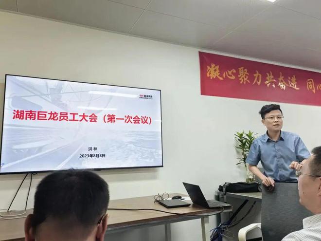 湖南巨龙公司总经理洪林就子公司的建立、发展、未来规划及日常管理、公司制度等方面进行全面详细宣讲,并部署今年经营目标和关键任务,对全体同事积极作为、敢于担当的工作作风进行肯定,并代表公司对所有员工一直以来为公司作出的努力奉献表示衷心的感谢,并鼓励全体同事要继续坚持“共创、共担、共享”的团队精神,坚定信心,攻坚克难,全力以赴完成湖南巨龙公司各项工作目标。