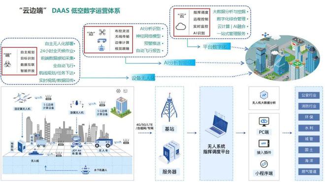 我司“市域低空无人机服务”是以“云边端”的架构理念,融合无人机产业的各项产品技术,打造面向政府多个部门的集服务、管理、数据、供应链为一体的一站式解决方案,以无人机飞行服务、低空大数据共享、无人机网格化管理三个能力平台为核心,面向政府各部门提供无人机的作业服务、实战应用、统一接入和数据共享、以及对无人机的监管能力。