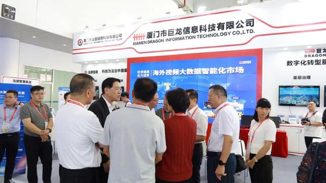 展会现场人声鼎沸,参展人员络绎不绝,来自中央政法委、福建大数据局、最高检领导、省政法委、厦门政法委、法制局、司法局、公安局等全国单位领导及专业人士莅临展位参观指导。