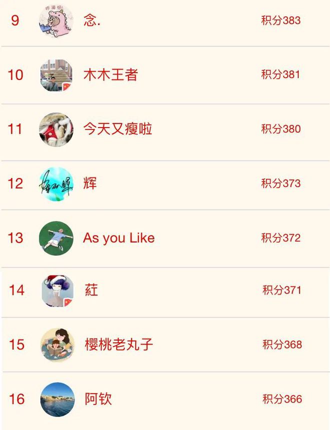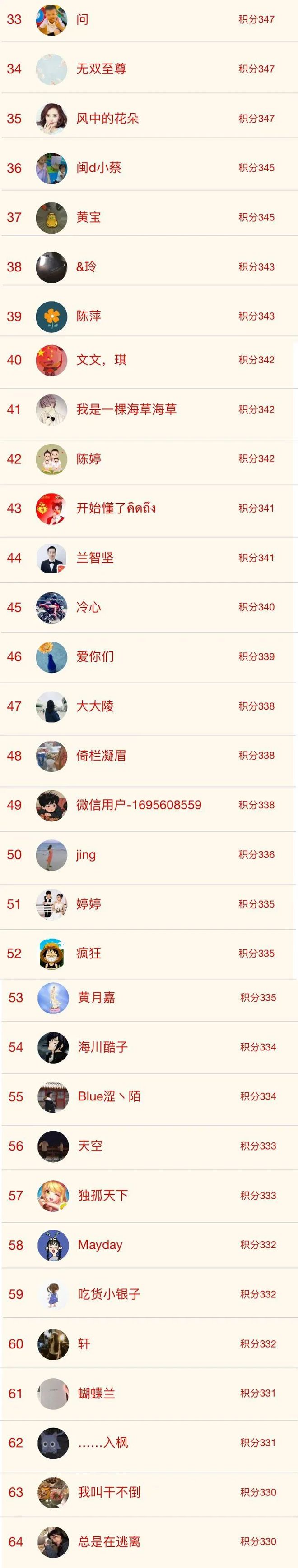 积分排行第33-64名:微信红包10元