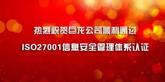 巨龙公司顺利通过ISO27001信息安全管理体系认证