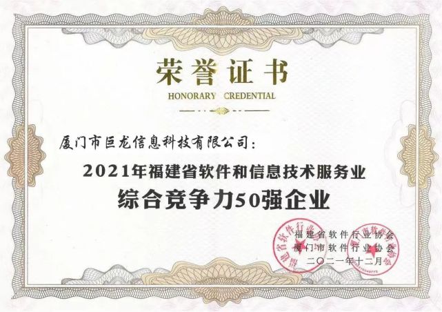 2021年福建软件与信息技术服务业五十强发布,巨龙信息凭借20多年政务信息化建设经验和综合实力成功入选。...